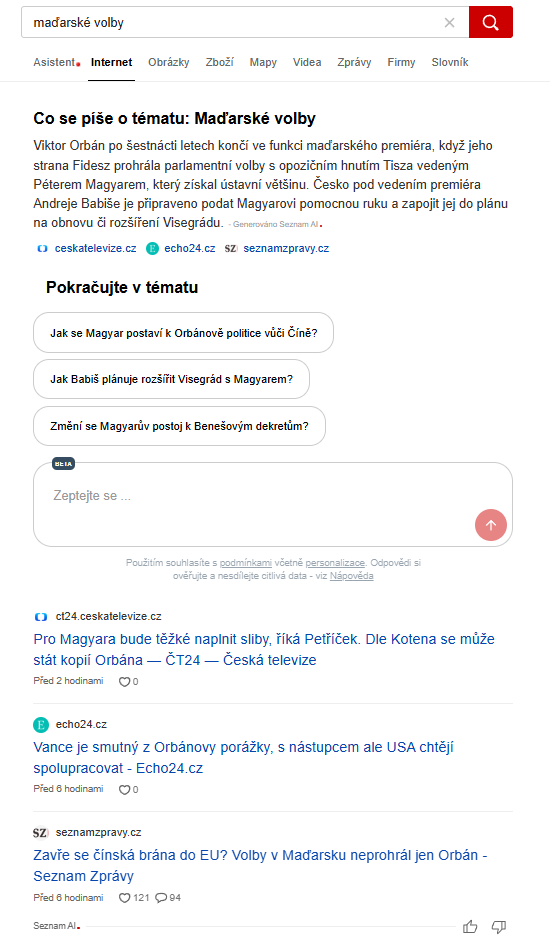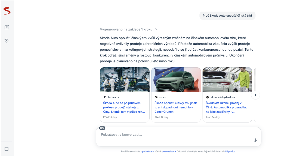 Ve Vyhledávání a v Seznam Asistentovi se nám mezi lety 2023 a 2025 podařilo zdvojnásobit počet zpravodajských dotazů. Naše data jasně potvrzují, že tento přístup přináší pozitivní výsledky jak uživatelům, tak samotným webům. Uživatelé se díky zapojení AI do našich služeb ptají i na dotazy, na které by dříve odpověď nedostali.